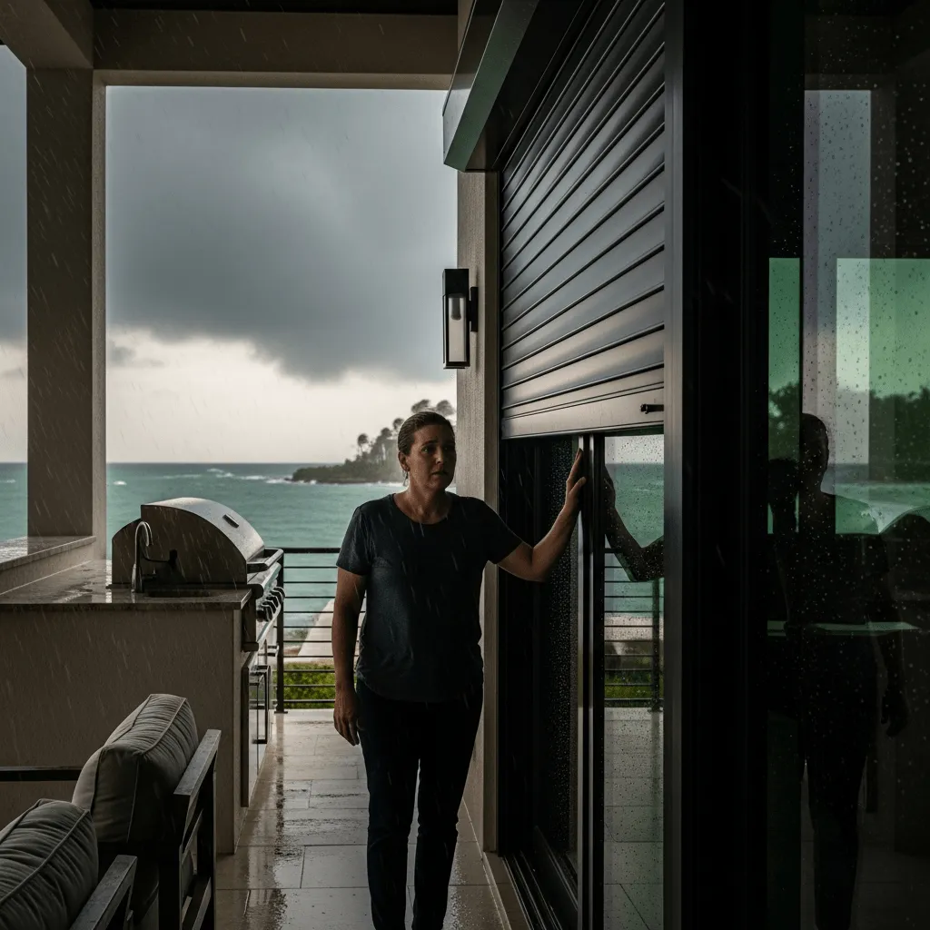 Every hurricane season, the dread returns—scrambling to protect your waterfront estate while watching storm tracks with growing anxiety. Your outdoor furniture, custom kitchen, premium finishes—all at risk while you struggle with traditional boarding methods that leave you trapped in darkness.